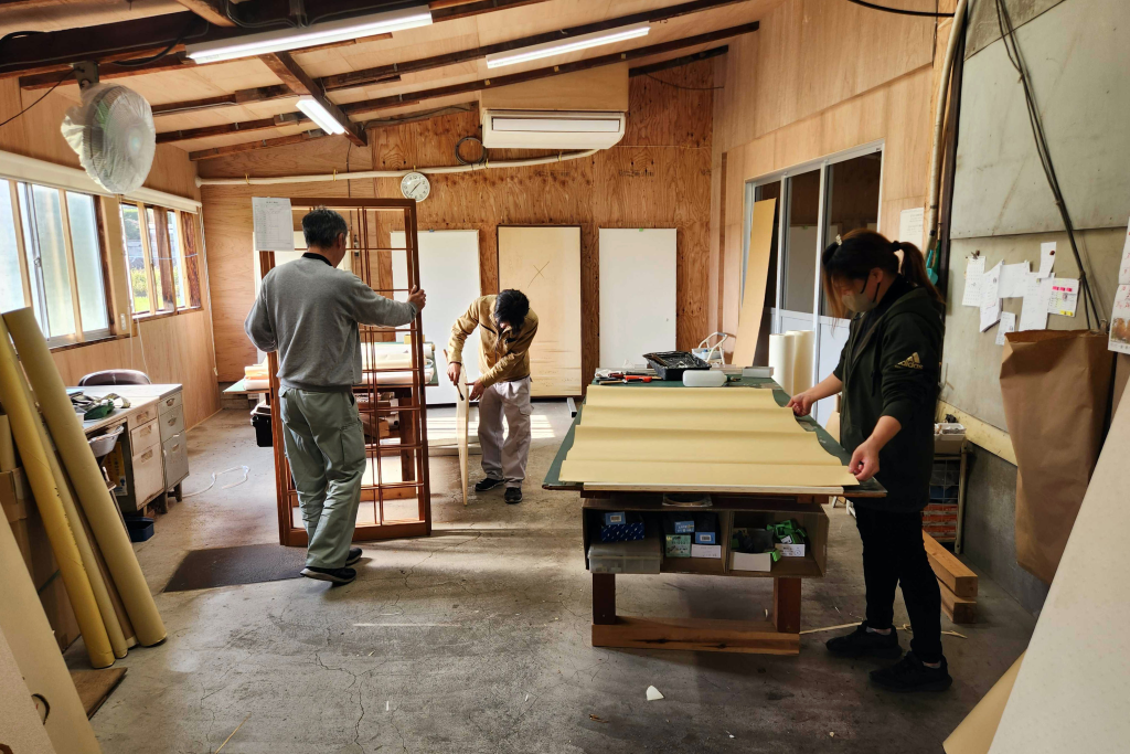 当社では、段ボールや発泡スチロールの襖ではなく、何度も貼替ができる本襖(組子襖)にこだわりながら製作・施工を続けています。