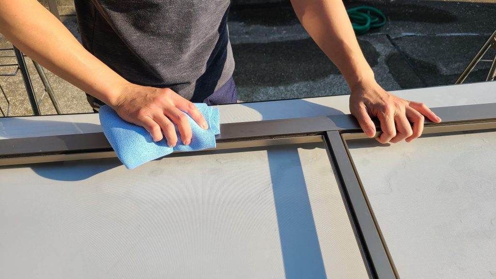 長年溜まった汚れも水洗いしてきれいにしてから職人が丁寧に障子紙を張ります。